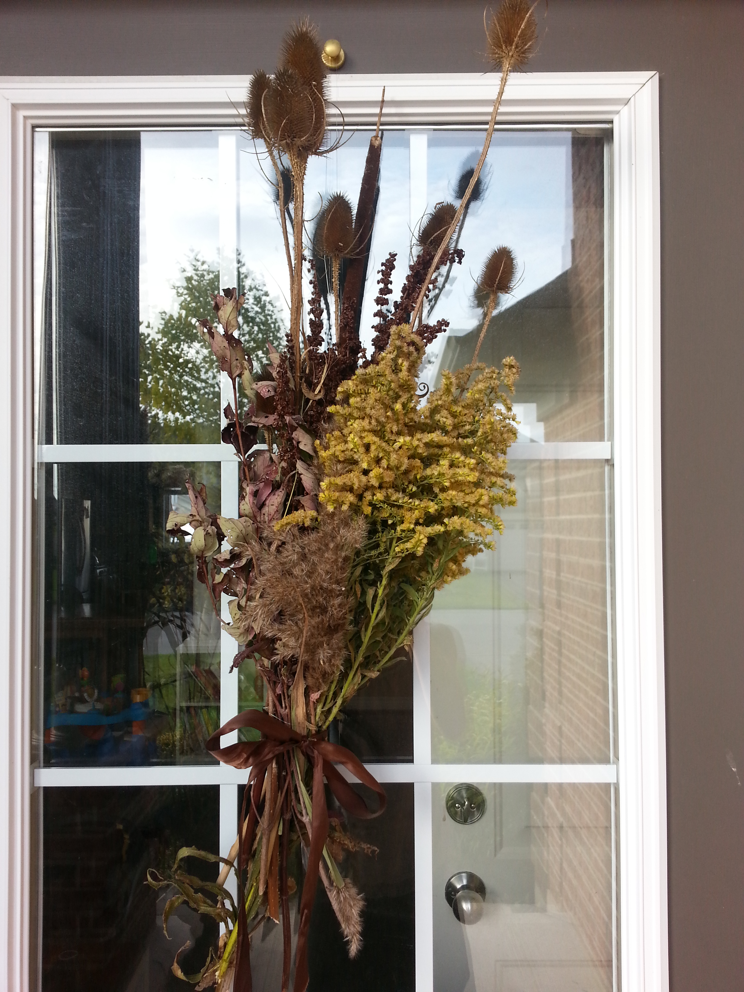 There are some great weeds in this part of the country. After growing up in Alberta where the only free plants to really choose from was grass, grass and more grass, I was head over heals with all the interesting shapes and textures growing wild here in Ontario. I have learned a few things though, the first scavenged wreath I made for our last home I included some beautiful milkweed pods. Paul tried to warn me but I was in love with them. They looked great until the day when they opened to release thousands of seeds all over my door. I’m still thinking I’d like to solve that by trying to dip the pods in laquer to seal them up but that will have to be for another day.
