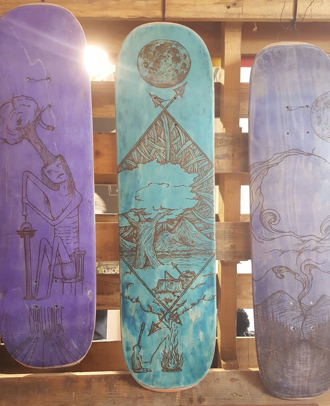 First stop was Railway City Brewery. Irvin Loewen was tucked in the corner but his work stuck out. Some pieces had a very unique application of an old and generally dated art form, wood burning. And his amazing skies and water were mezmorizing. Yes? Of course I love it, there’s touches of zentangle, a favourite style of mine.