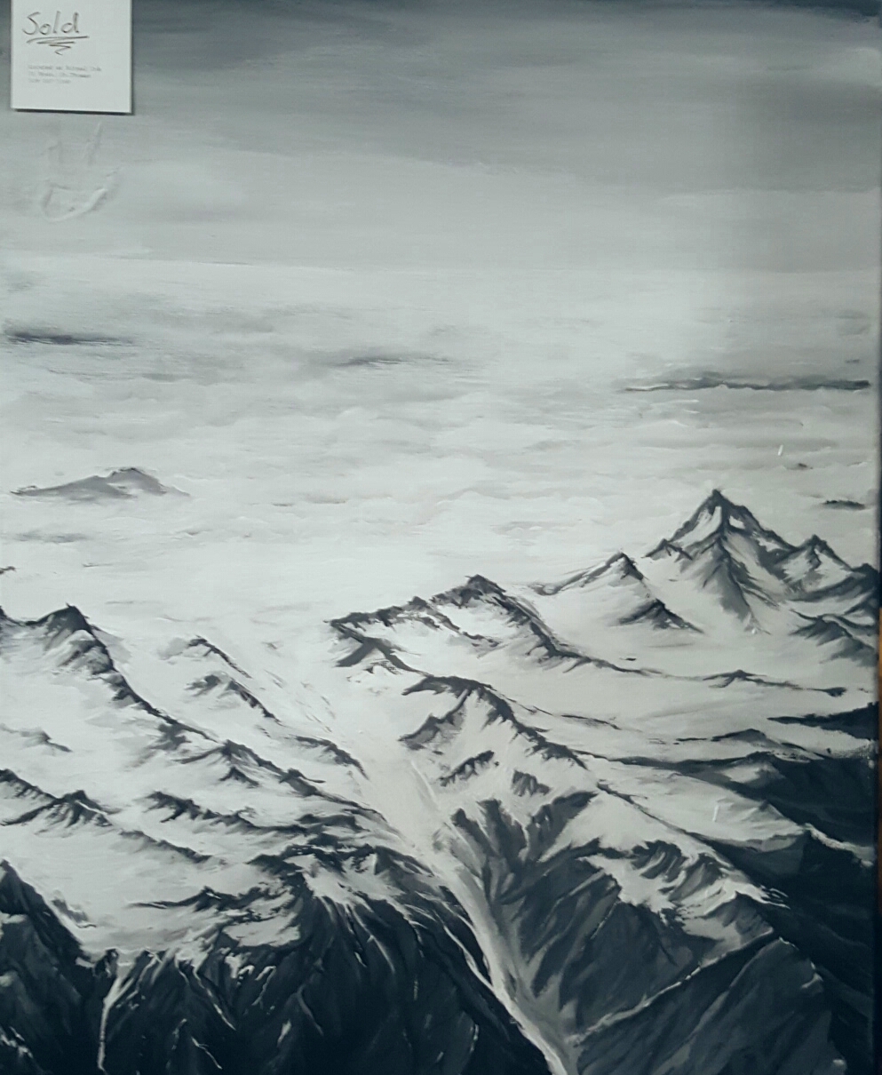 Maybe it’s the beauty of the mountains or the lure of my roots but these paintings were so perfect. A kind of layered simplicity. I took a couple turns around the room but had to come back and capture them. AJ, your work is awesome and congrats on showing your love of so many different styles. (This guy does tattoos too. ;))