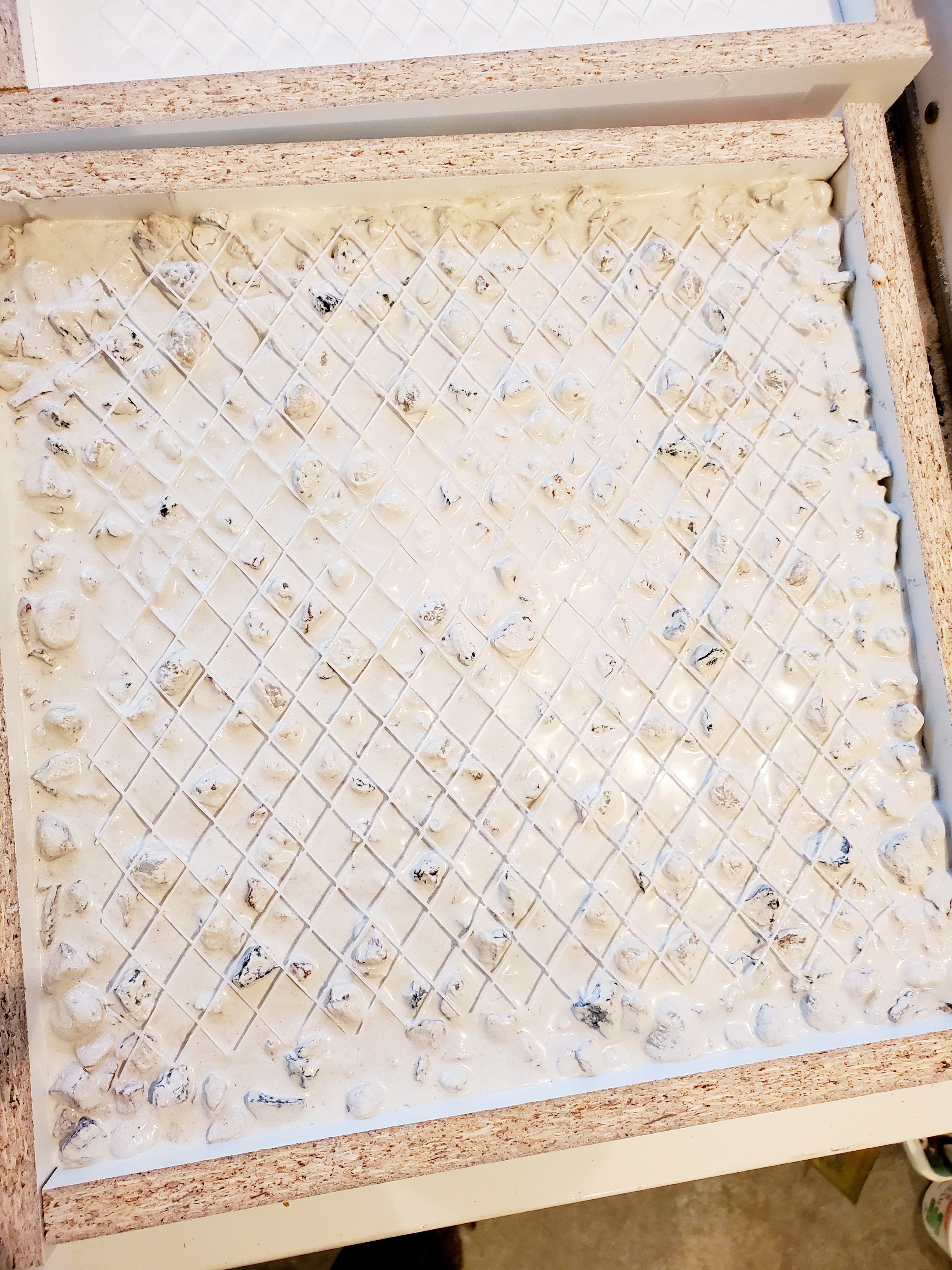 With my recent experiments using epoxy being quite costly, I decided to go the concrete route for the base. Thanks to Modernbuilds for his video on making white concrete, I was able to adapt his recipe to my needs. Research in to colorant led me to Colour Rare Canada, a dry pigment useful for a variety of applications such as natural paints, bath products, makeup and concrete of all things. In the end white sand proved to be the most difficult to find. Silica sand is most readily available for golf courses and from aggregate suppliers but there’s major health problems if it’s ever ingested. Knowing I’d be grinding it down this seemed quite likely to happen and a really bad option. Eventually, I found a white granite sand sold for children’s sand tables of all things, which removed all risk.